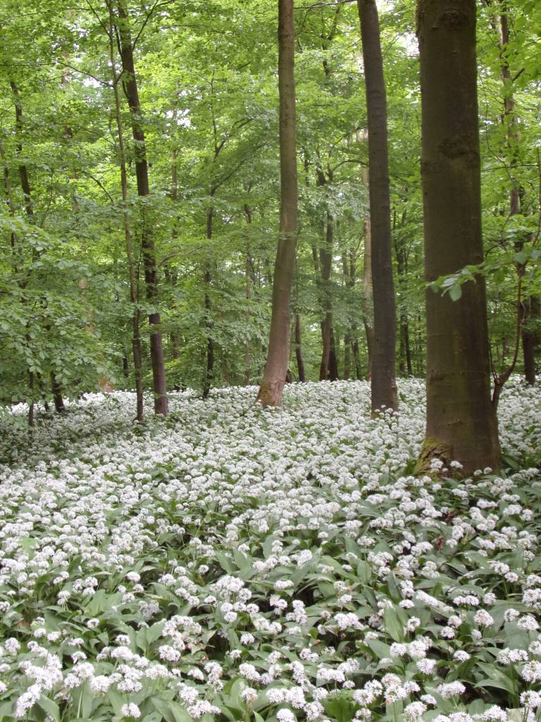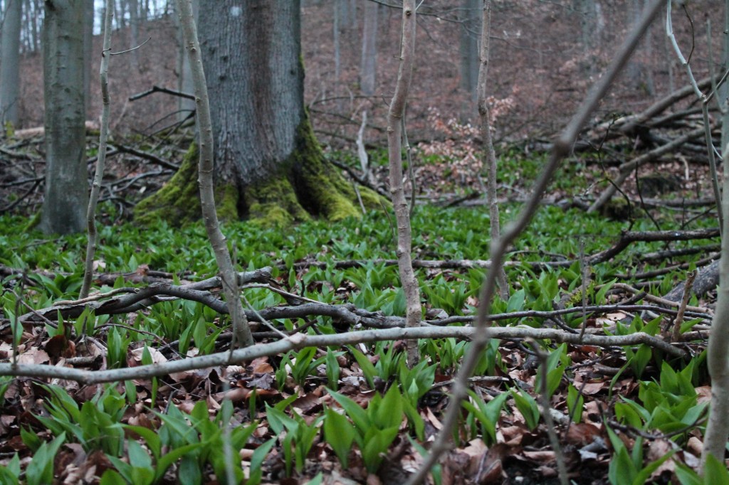 Eine Pflanze, die du jetzt schon entdecken kannst, ist der Bärlauch (Allium ursinum). Der Bärlauch mag es gerne feucht und schattig, weswegen er viel im Wald zu finden ist. Wo Bärlauch wächst, ist der Boden fruchtbar und feucht (Anzeigerpflanze).