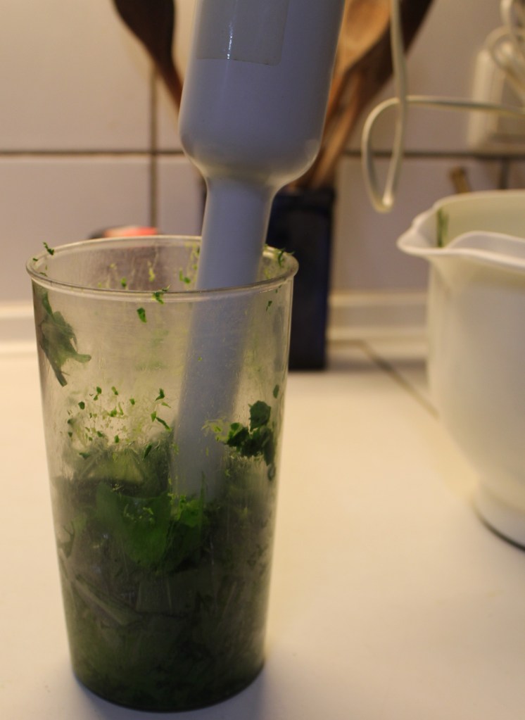 Gehackten Bärlauch mit ausreichend Olivenöl pürieren. Dabei etwas Geduld mitbringen und das Gemisch zwischendurch umrühren. Denk dran, es soll ein Pesto werden, also ruhig noch einen Schuss Öl dazu. So ergibt sich eine schöne, homogene Masse.